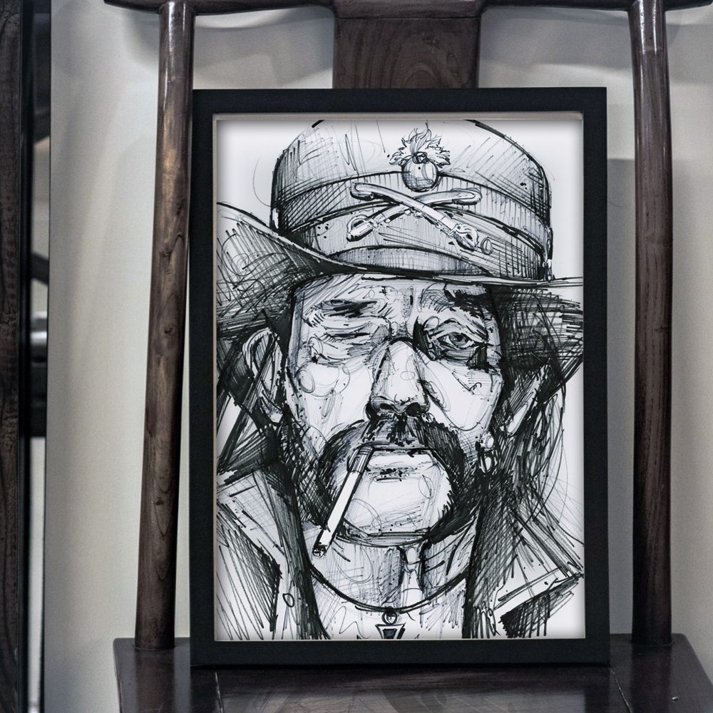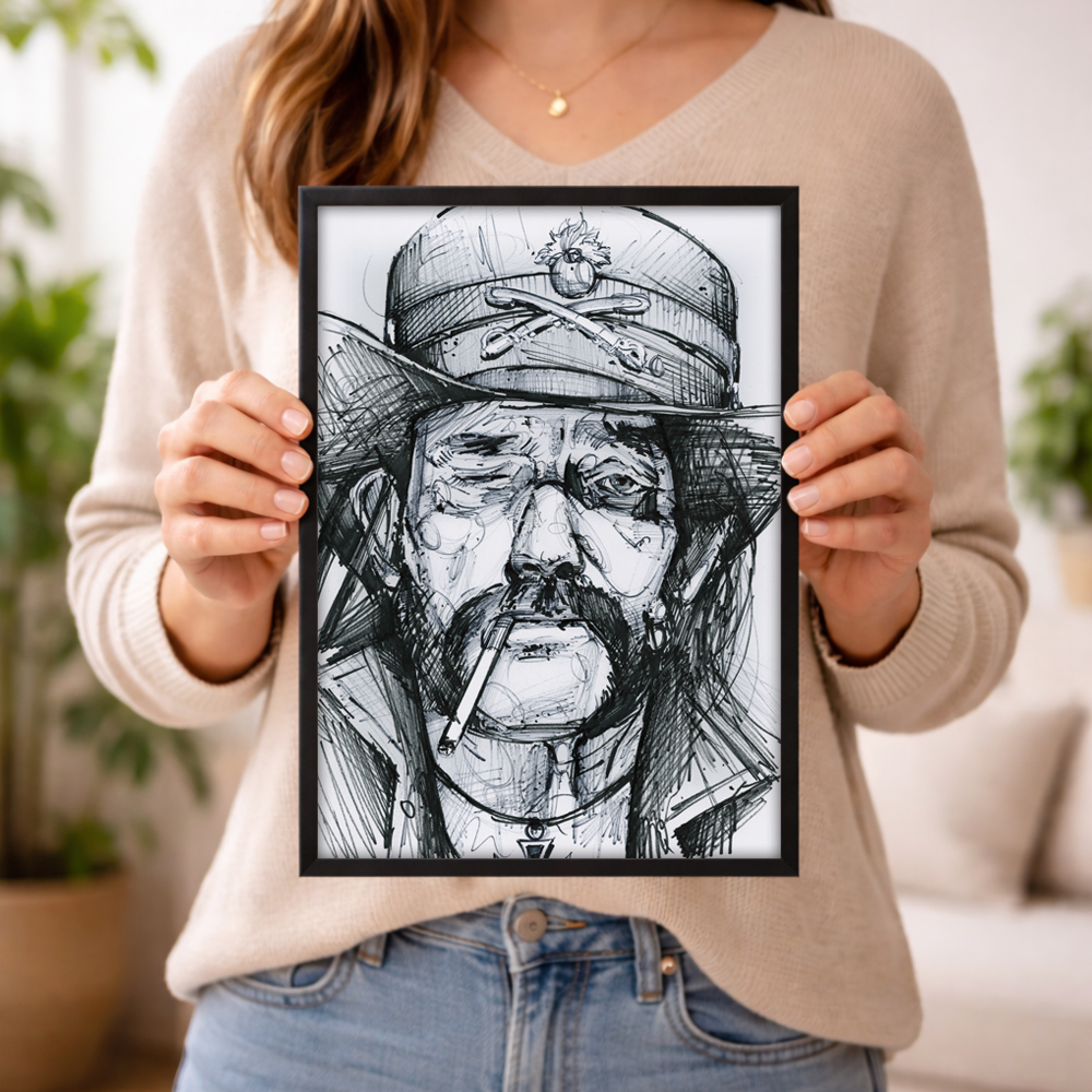 Invest in an authentic artwork that mixes history and creativity. First, this Lemmy Kilmister illustration is a striking centerpiece. Moreover, it celebrates artistic expression and cultural meaning. Therefore, it adds value to your collection. Finally, choose this hand-illustrated piece for a unique and meaningful artwork.
