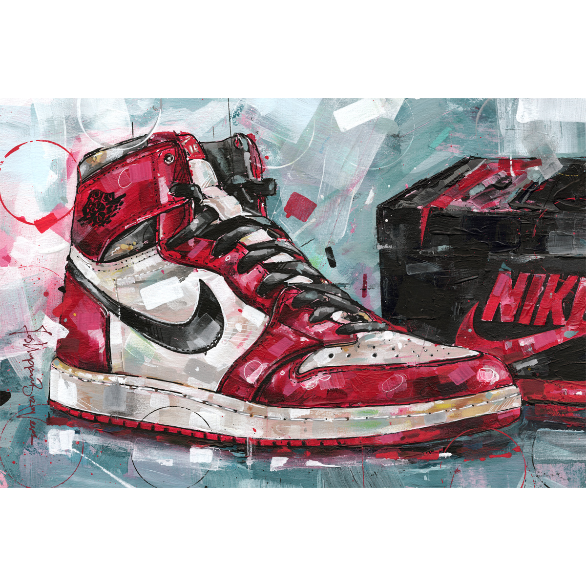 Furthermore, each canvas shows the original artwork in sharp detail. The artist creates every design by hand and does not use artificial intelligence. Therefore, you receive a unique and authentic sneaker art print. It truly stands out in your home or collection.